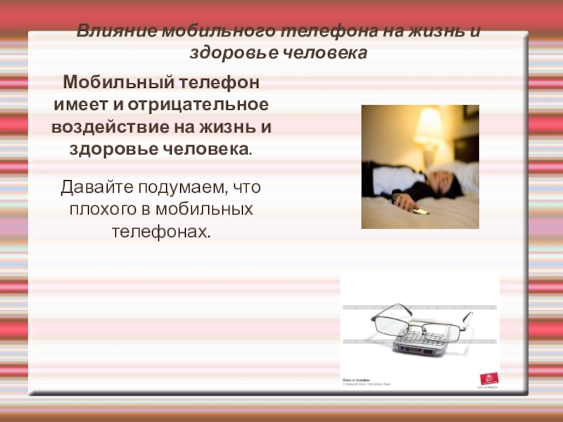 Слайд 5Влияние мобильного телефона на жизнь и здоровье человека