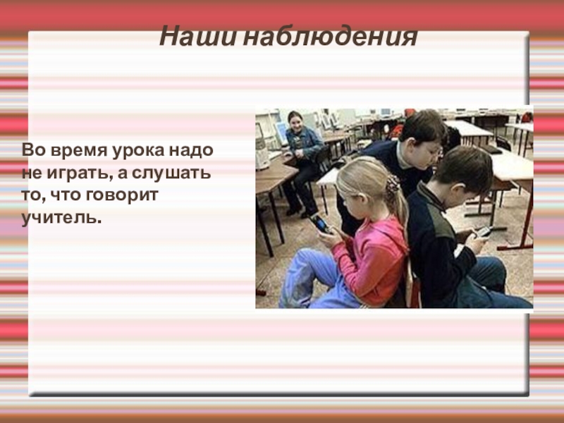 Наши наблюденияВо время урока надо не играть, а слушать то, что говорит учитель.