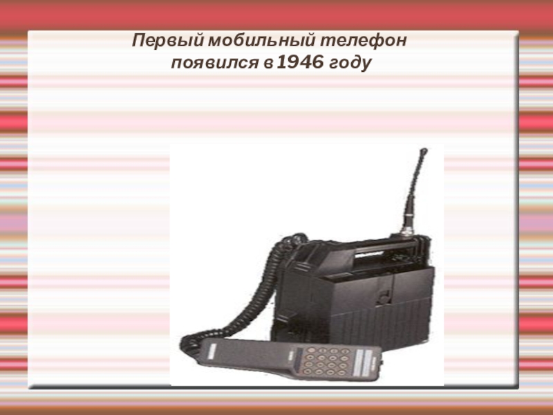 Слайд 3Первый мобильный телефон появился в 1946 году
