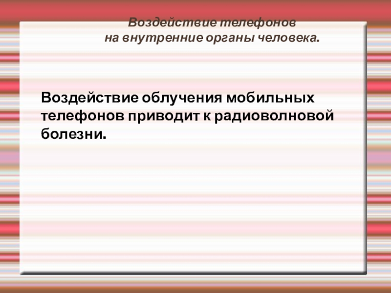 Воздействие телефонов  на внутренние органы человека. Воздействие облучения мобильных телефонов приводит к радиоволновой болезни.
