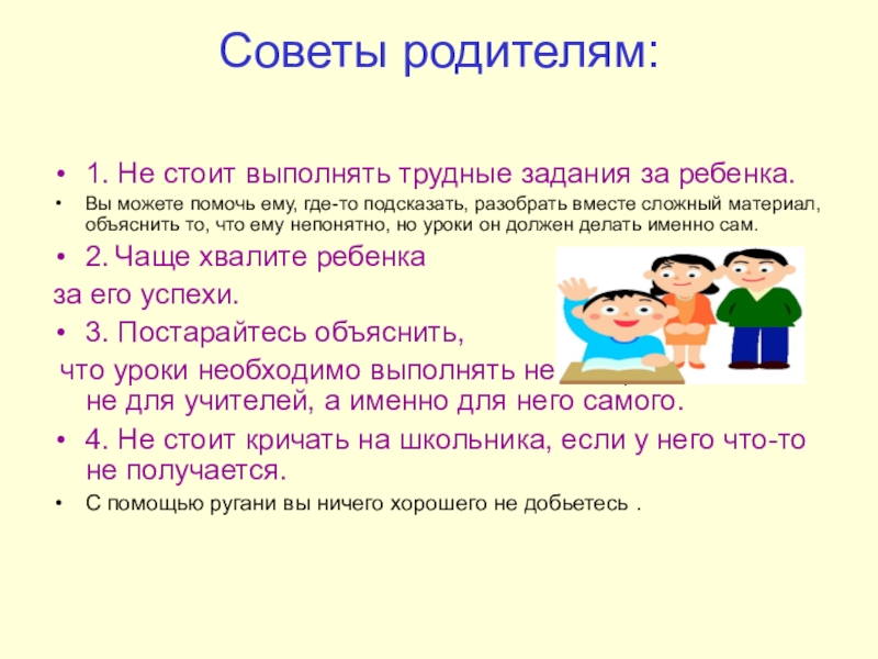 4. Не стоит кричать на школьника, если у него что-то не получается.