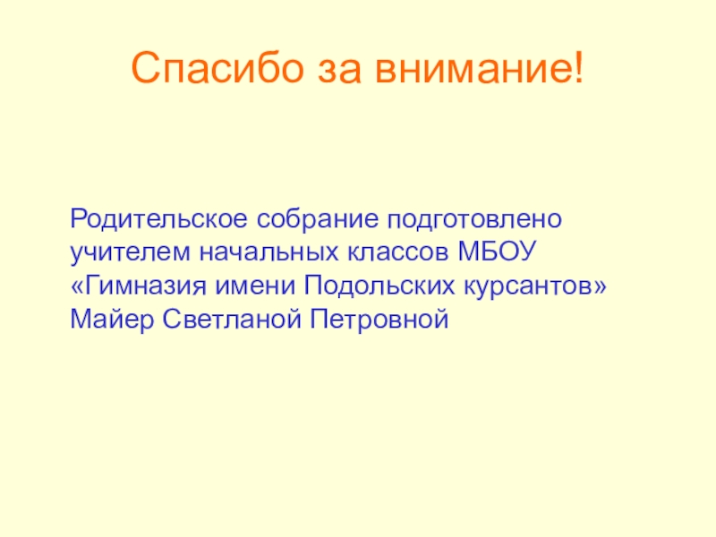 Родительское собрание подготовлено учителем начальных классов МБОУ «Гимназия имени Подольских курсантов» Майер Светланой Петровной