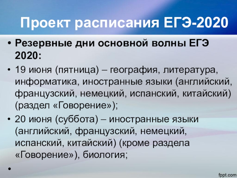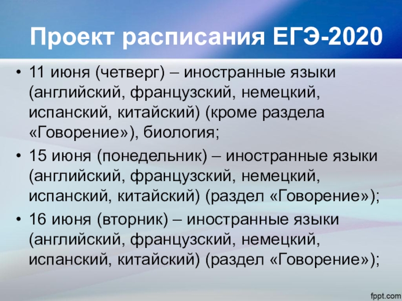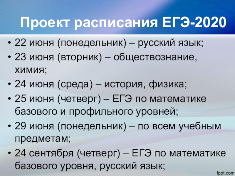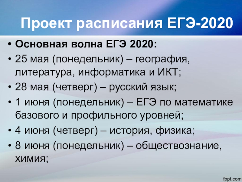 Проект расписания ЕГЭ-2020