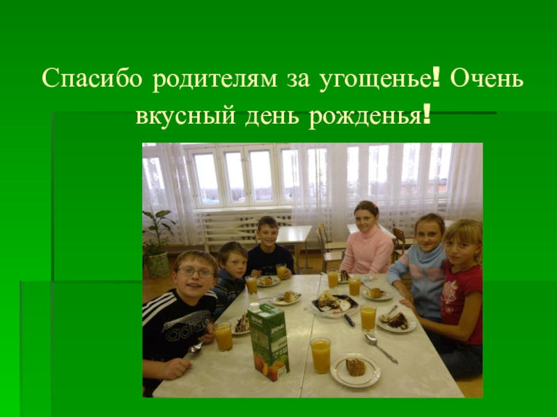 Слайд 11 Спасибо родителям за угощенье! Очень вкусный день рожденья!