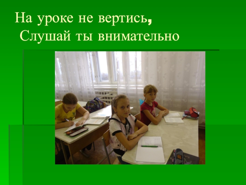 Слайд 2На уроке не вертись, Слушай ты внимательно