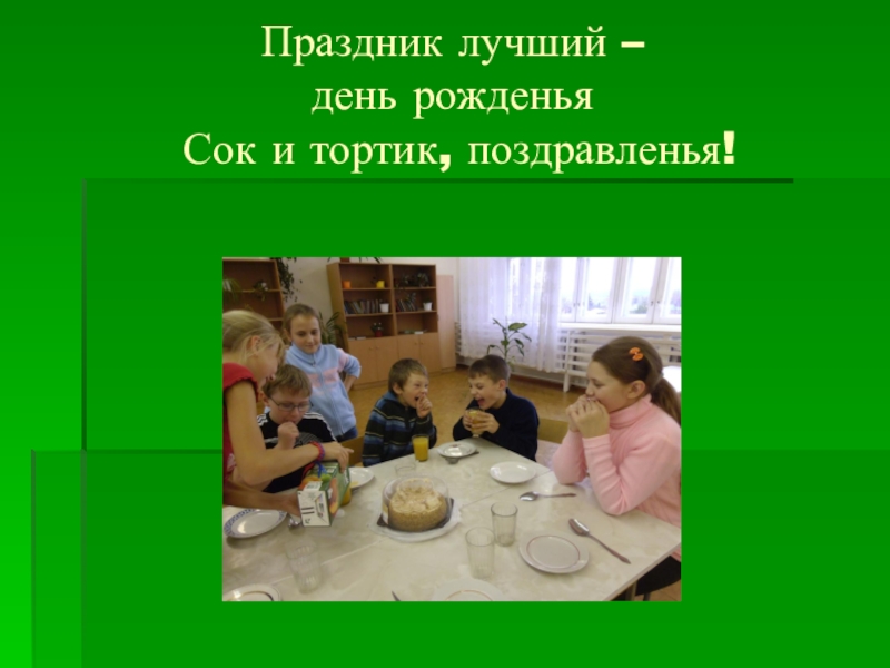 Слайд 10Праздник лучший – день рожденья Сок и тортик, поздравленья!