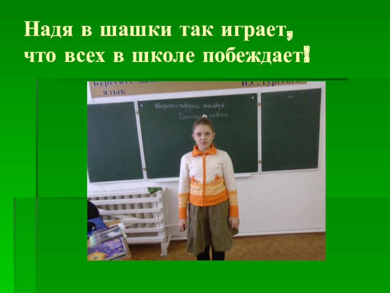 Слайд 12Надя в шашки так играет, что всех в школе побеждает!