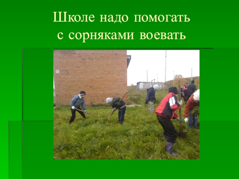 Слайд 7Школе надо помогать с сорняками воевать
