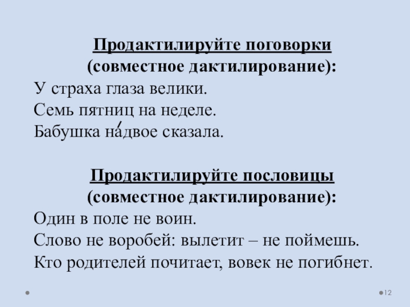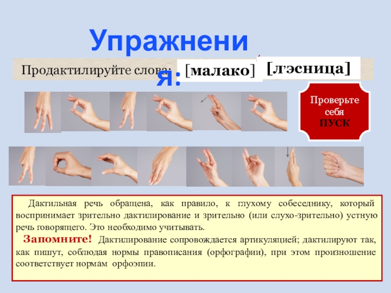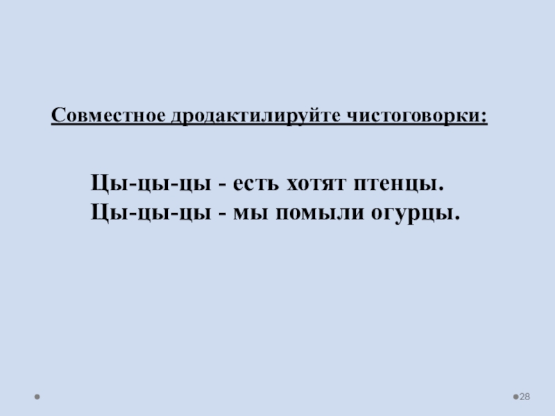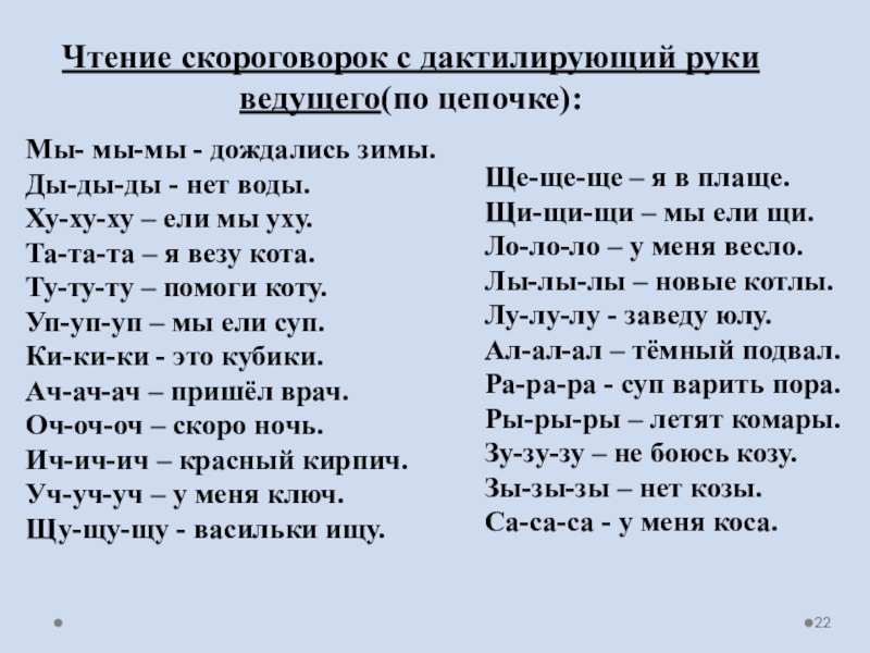 Чтение скороговорок с дактилирующий руки ведущего(по цепочке):