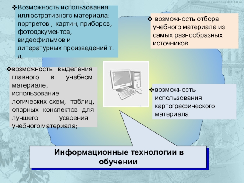 возможность выделения главного в учебном материале, использование логических схем, таблиц, опорных конспектов для лучшего усвоения учебного материала;