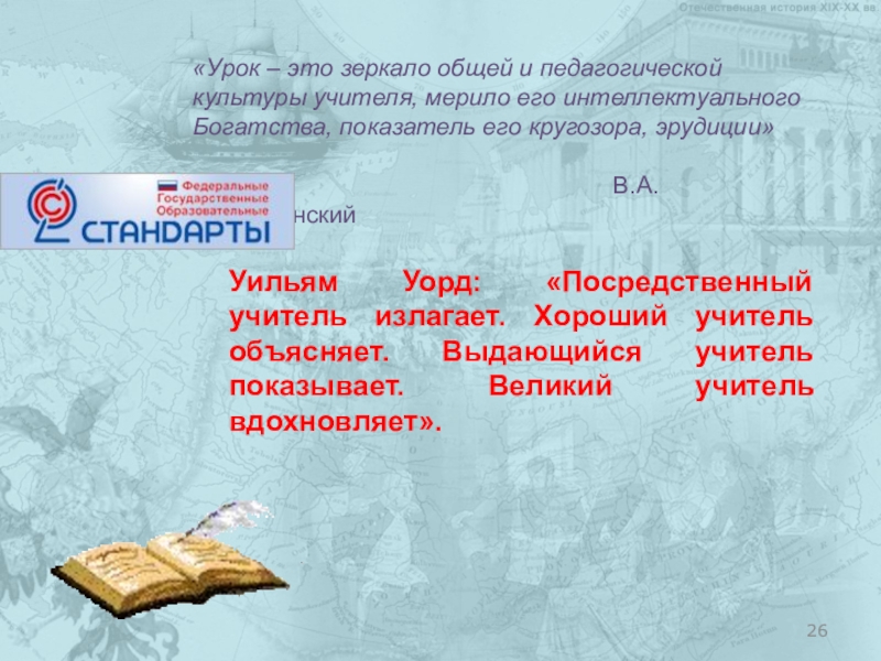 Уильям Уорд: «Посредственный учитель излагает. Хороший учитель объясняет. Выдающийся учитель показывает. Великий учитель вдохновляет».