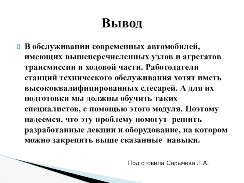 важность умения выявлять неисправности, и производить частичную разборку сборку узлов и агрегатов трансмиссии и ходовой части автомобиля