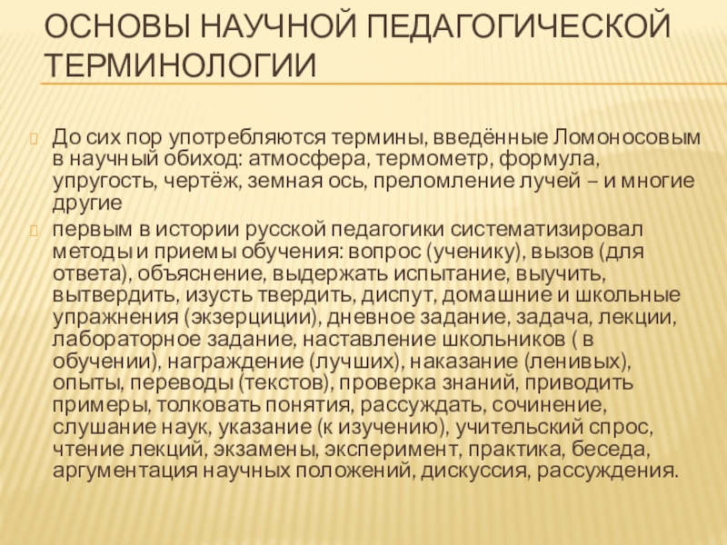 ПЕДАГОГИЧЕСКОЕ НАСЛЕДИЕ М.В.ЛОМОНОСОВА