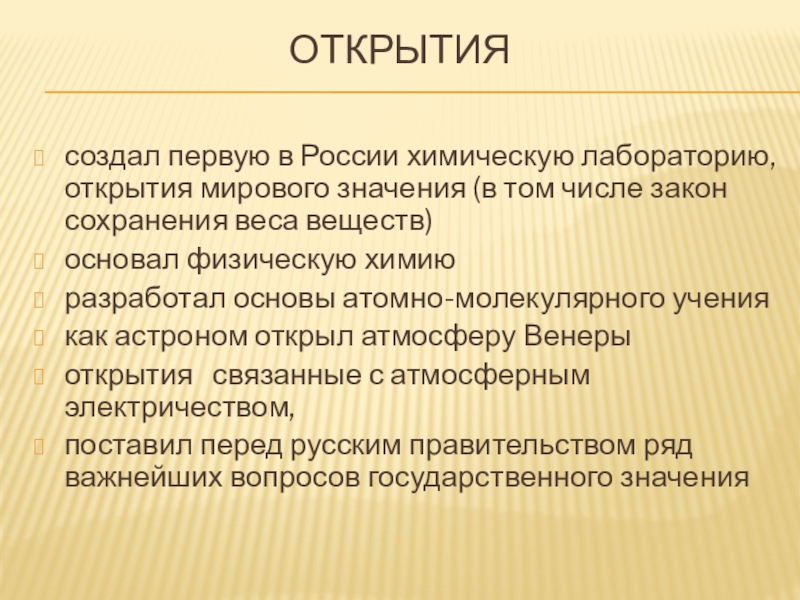 создал первую в России химическую лабораторию, открытия мирового значения (в том