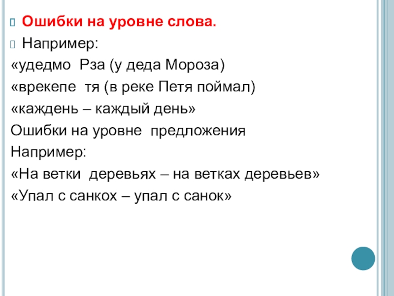 Исходя из этих сложностей, дети с данными нарушениями испытывают большие трудности и при написании изложений, пересказе текста. Нарушается понимание прочитанного на уровне слова, предложения, текста.
