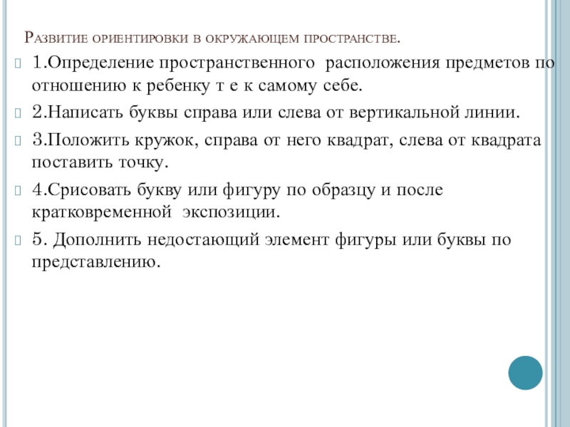 Слайд 35Развитие ориентировки в окружающем пространстве.