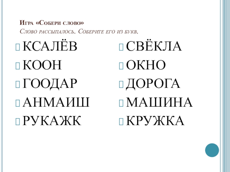 Пропускайте буквы Г, Х, чтобы прочитать слово.