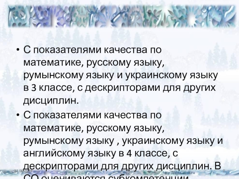 Слайд 7С показателями качества по математике, русскому языку, румынскому языку и украинскому
