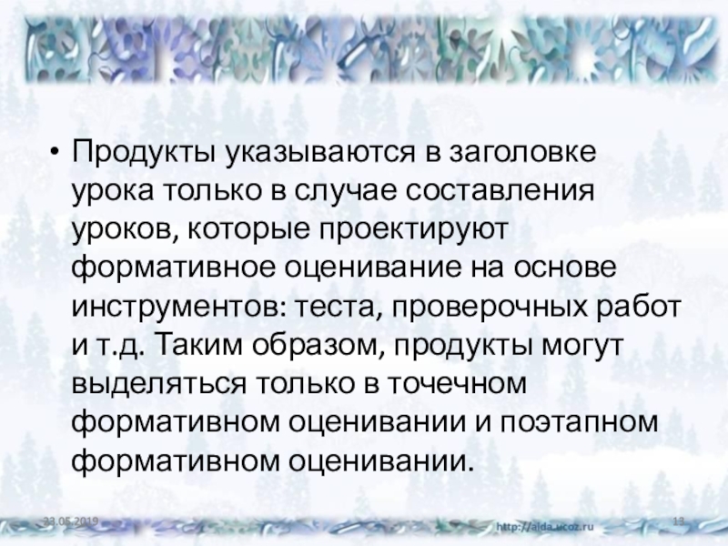 Слайд 13Продукты указываются в заголовке урока только в случае составления уроков, которые