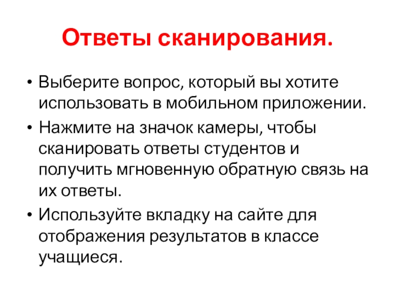 Ответы сканирования.Выберите вопрос, который вы хотите использовать в мобильном приложении.Нажмите на значок камеры, чтобы сканировать ответы студентов