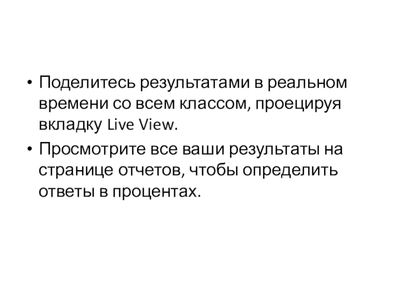 Слайд 16Поделитесь результатами в реальном времени со всем классом, проецируя вкладку Live