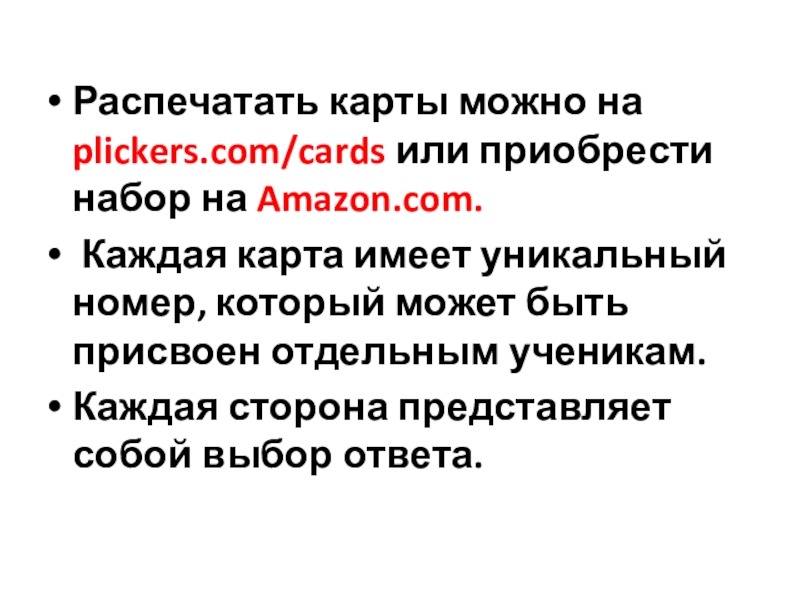 Слайд 8Распечатать карты можно на plickers.com/cards или приобрести набор на Amazon.com.