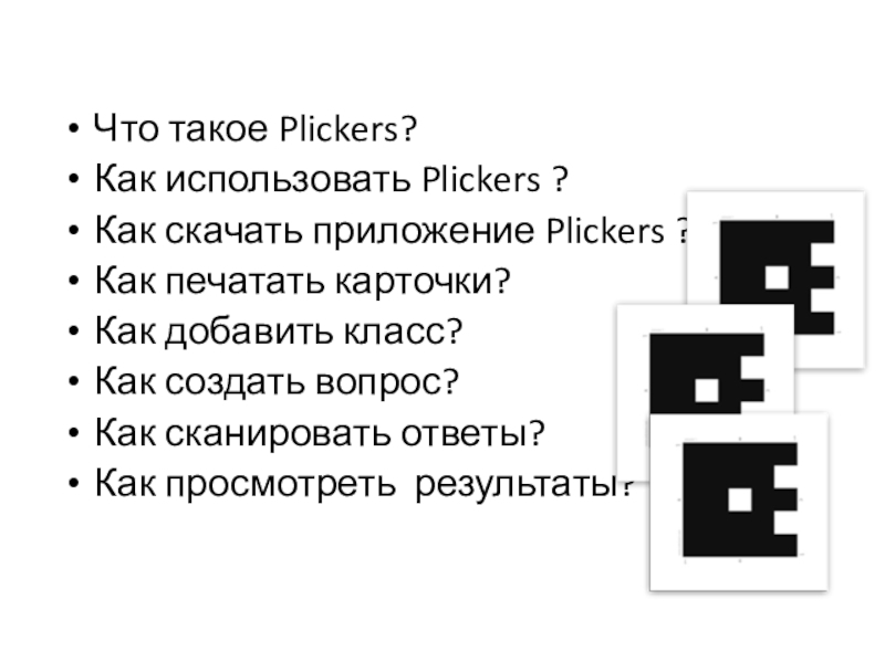 Что такое Plickers?Как использовать Plickers ?Как скачать приложение Plickers ?Как печатать карточки?Как добавить класс?Как создать вопрос?Как сканировать ответы?Как просмотреть результаты?