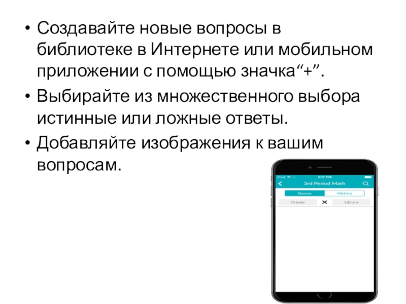 Слайд 13Создавайте новые вопросы в библиотеке в Интернете или мобильном приложении с