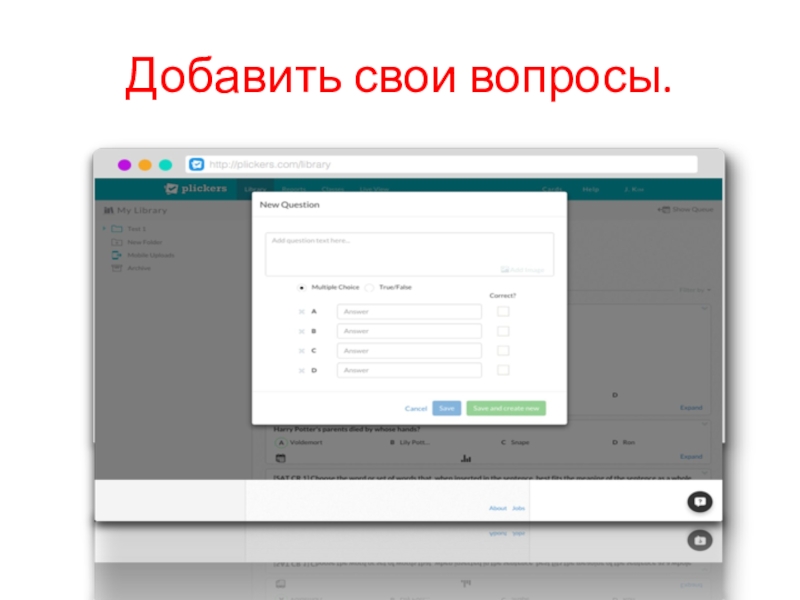Создавайте новые вопросы в библиотеке в Интернете или мобильном приложении с помощью значка“+”.Выбирайте из множественного выбора истинные