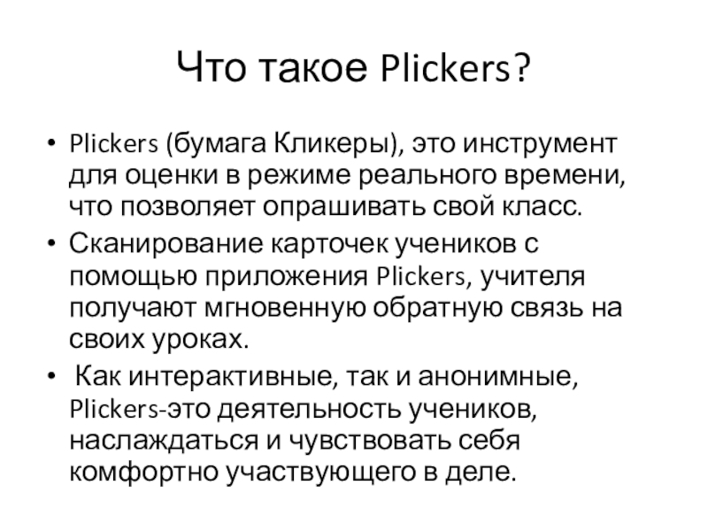 Что такое Plickers?Plickers (бумага Кликеры), это инструмент для оценки в режиме реального времени, что позволяет опрашивать свой