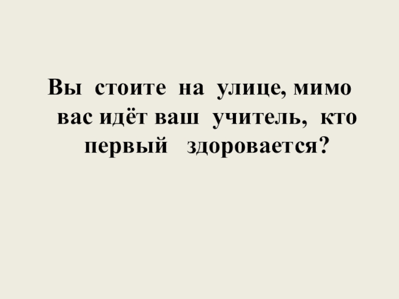 Слайд 20Вы стоите на улице, мимо вас идёт ваш учитель, кто первый