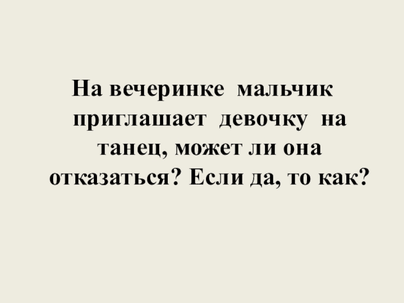 Слайд 21На вечеринке мальчик приглашает девочку на танец, может ли она отказаться?