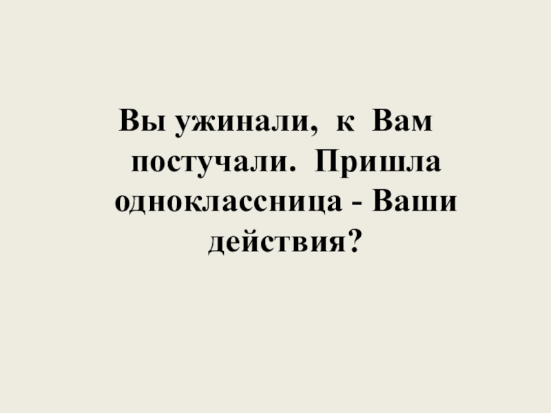 Слайд 22Вы ужинали, к Вам постучали. Пришла одноклассница - Ваши действия?