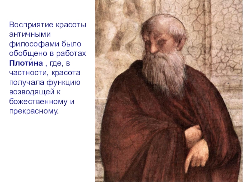 Слайд 20Восприятие красоты античными философами было обобщено в работах Плоти́на , где,