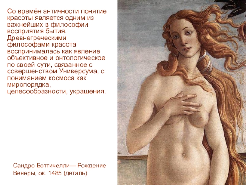 Слайд 16Сандро Боттичелли— Рождение Венеры, ок. 1485 (деталь)