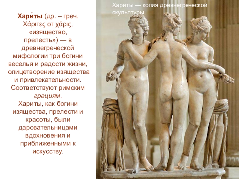 Слайд 14Хари́ты (др. – греч. Χάριτες от χάρις, «изящество, прелесть») — в древнегреческой