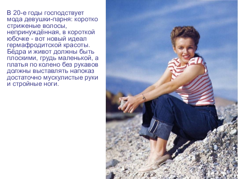 Слайд 52В 20-е годы господствует мода девушки-парня: коротко стриженые волосы, непринуждённая, в