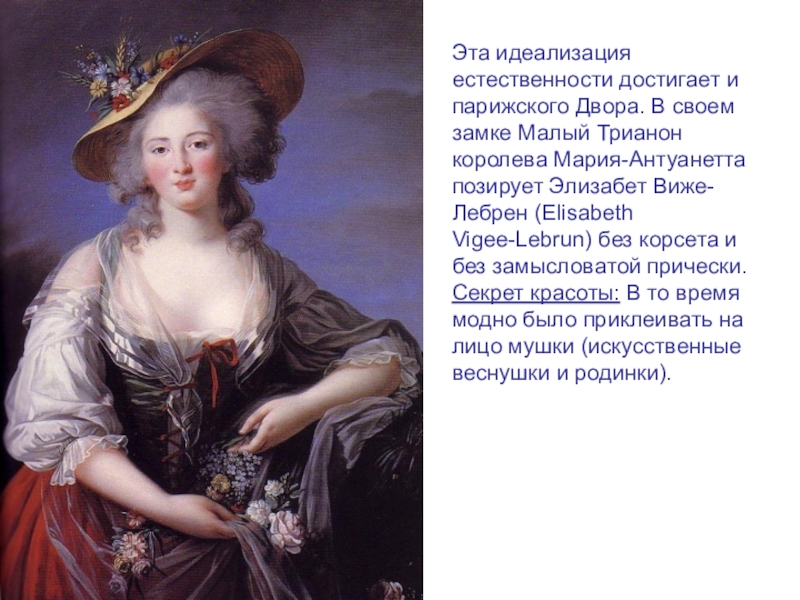 Трианон королева Мария-Антуанетта позирует Элизабет Виже-Лебрен (Elisabeth Vigee-Lebrun) без корсета и без замысловатой прически.
