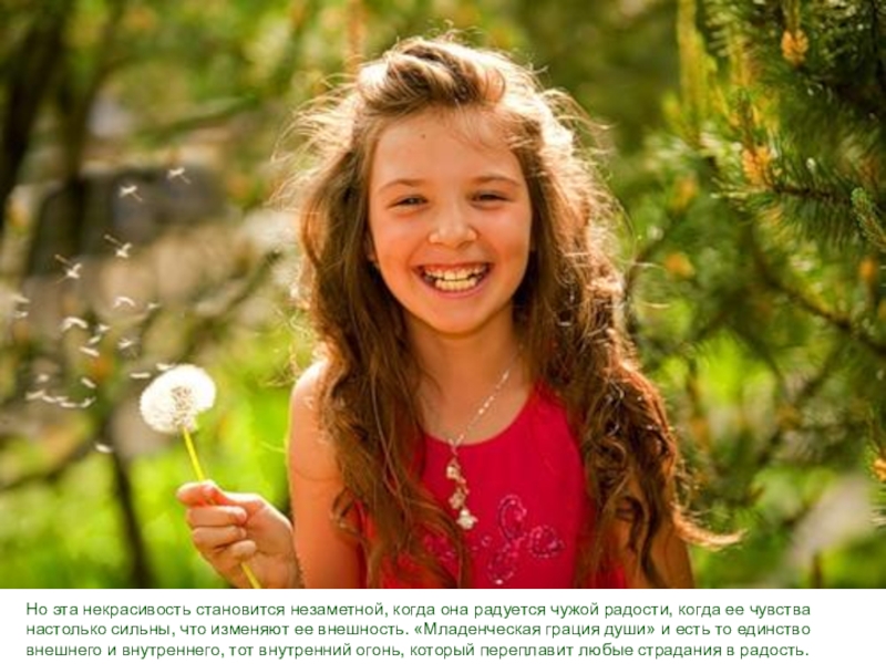 Но эта некрасивость становится незаметной, когда она радуется чужой радости, когда