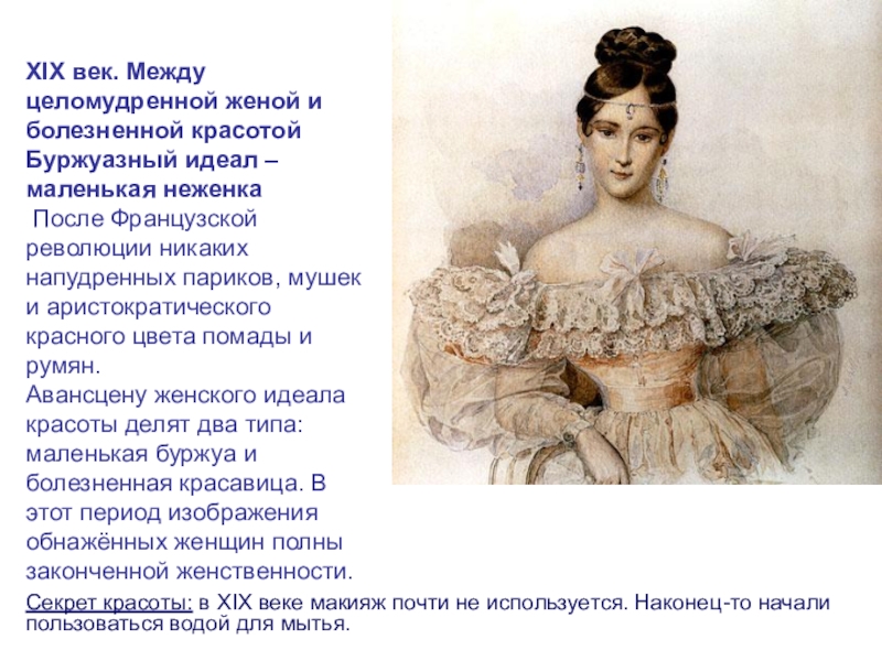Слайд 48XIX век. Между целомудренной женой и болезненной красотой