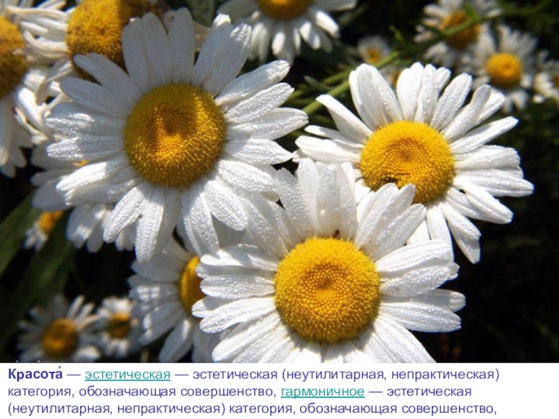 Красота́ — эстетическая — эстетическая (неутилитарная, непрактическая) категория, обозначающая совершенство, гармоничное