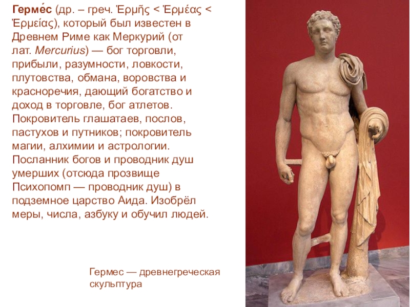 Слайд 15Герме́с (др. – греч. Ἑρμῆς < Ἑρμέας < Ἑρμείας), который был