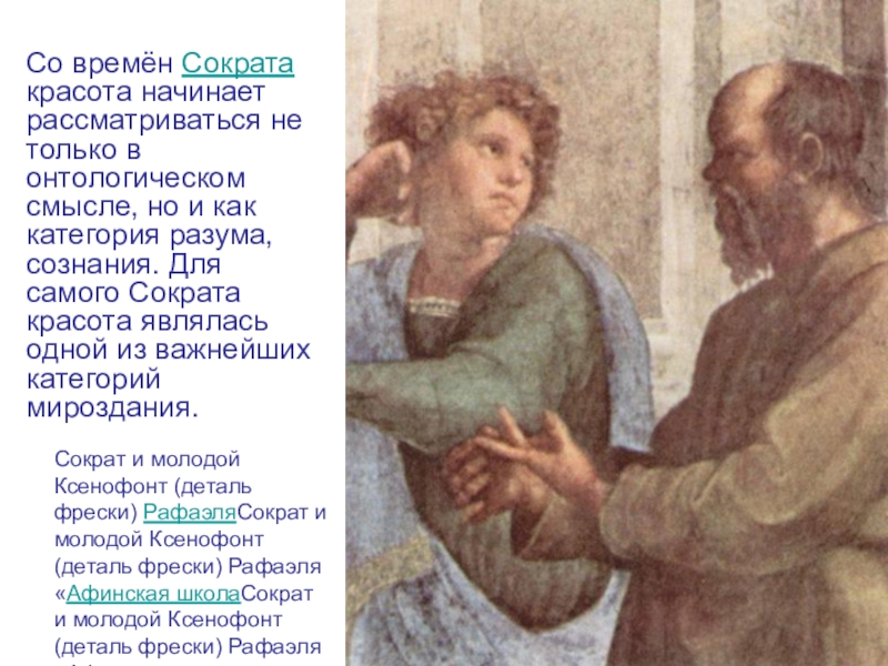 Слайд 17Со времён Сократа красота начинает рассматриваться не только в онтологическом смысле,
