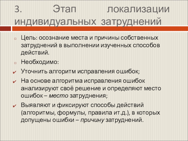 Слайд 73. Этап локализации индивидуальных затруднений