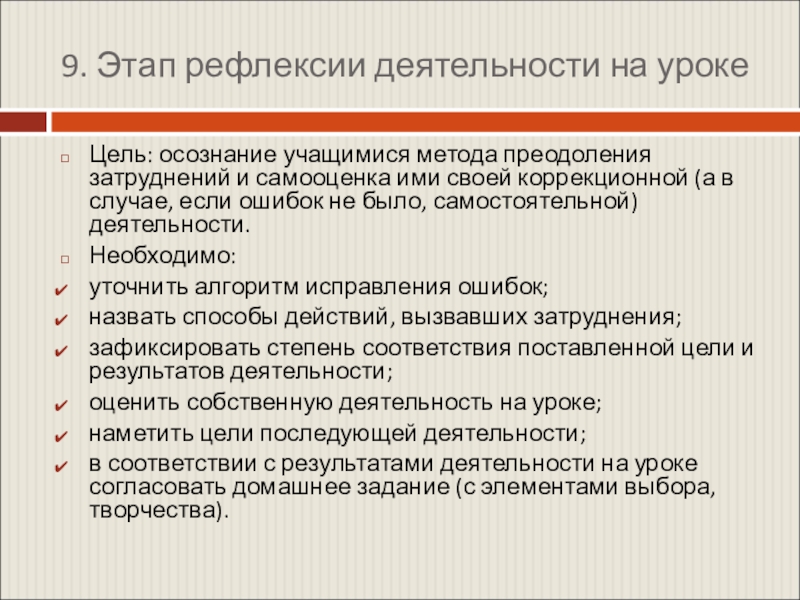 Слайд 139. Этап рефлексии деятельности на уроке