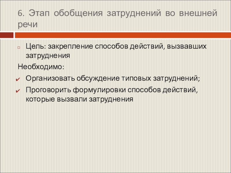 Слайд 106. Этап обобщения затруднений во внешней речи