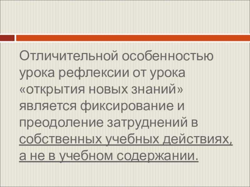 Слайд 3Отличительной особенностью урока рефлексии от урока «открытия новых знаний» является фиксирование