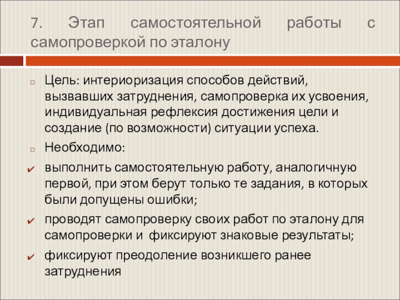 Слайд 117. Этап самостоятельной работы с самопроверкой по эталону