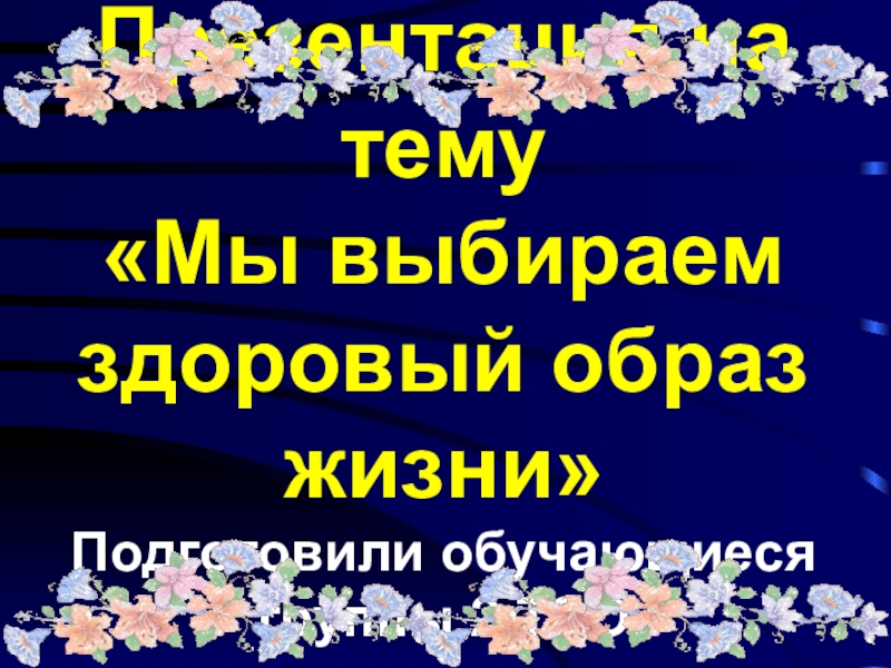 Презентация на тему «Мы выбираемздоровый образ жизни»Подготовили обучающиеся группы 2 ТЭО