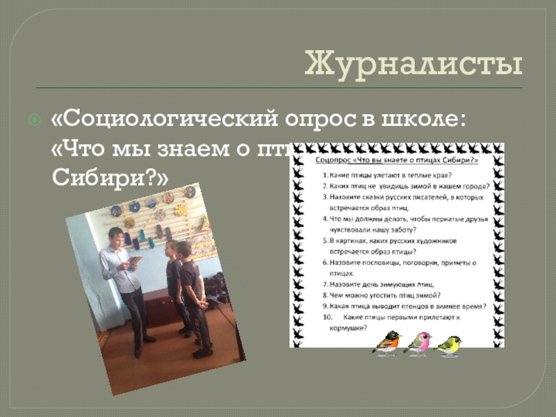 «Социологический опрос в школе: «Что мы знаем о птицах